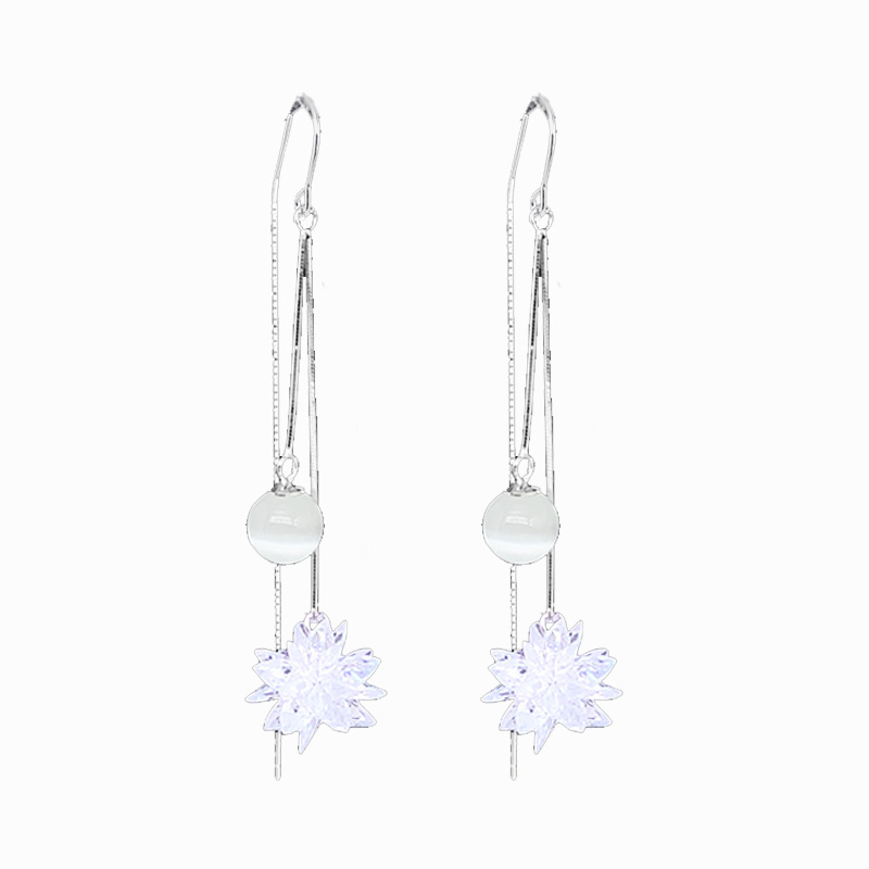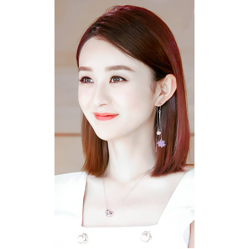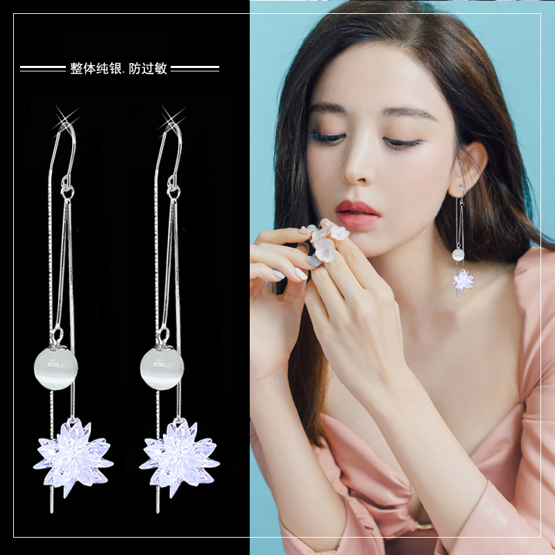 Pure Silver Ear Ring Female Long Version Purple Ice Blossom Cat Eye Stone Advanced Sensual Temperament Flow Su New Tide Anti-Lose Ear Necklace