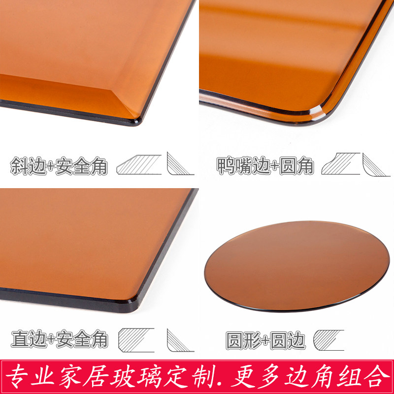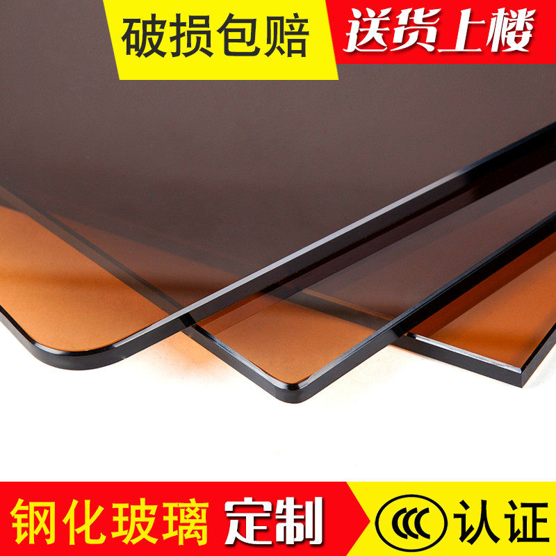 Tea-colored tempered glass customized dining table coffee table super white countertop customized round rectangular shaped household frosted paint