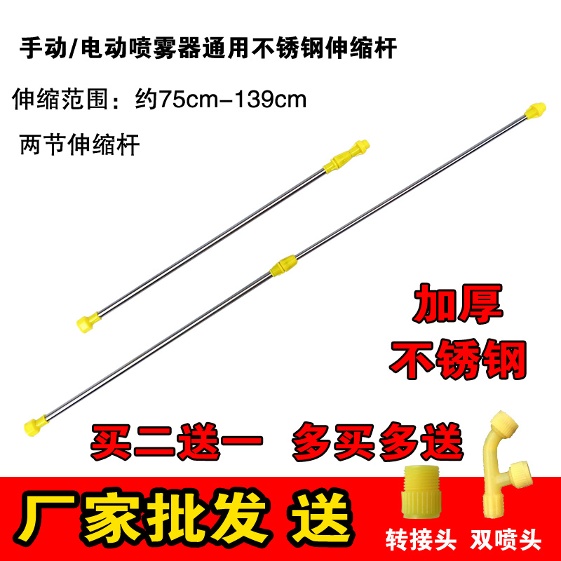2 6 m stainless steel telescopic rod plastic 4 eyes straight spray Buy 2 sends 1 heel 2 6 m stainless steel telescopic rod (send double spray head) Buy 2 Root send 1 heel 2 6 m stainless steel telescopic rod