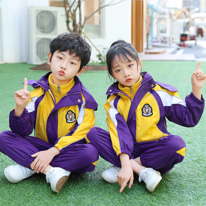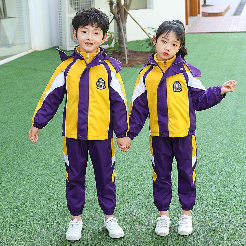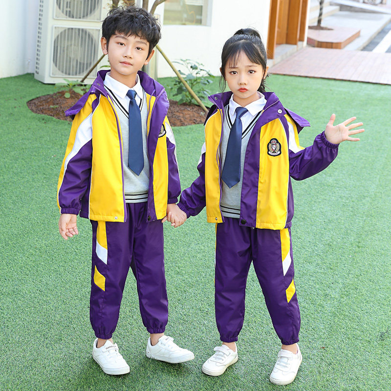 Kindergarten uniform autumn and winter children's jacket three-piece purple school uniform British style thickened class uniform for primary school students