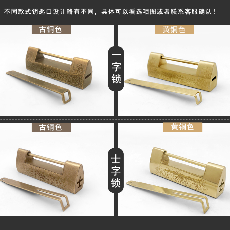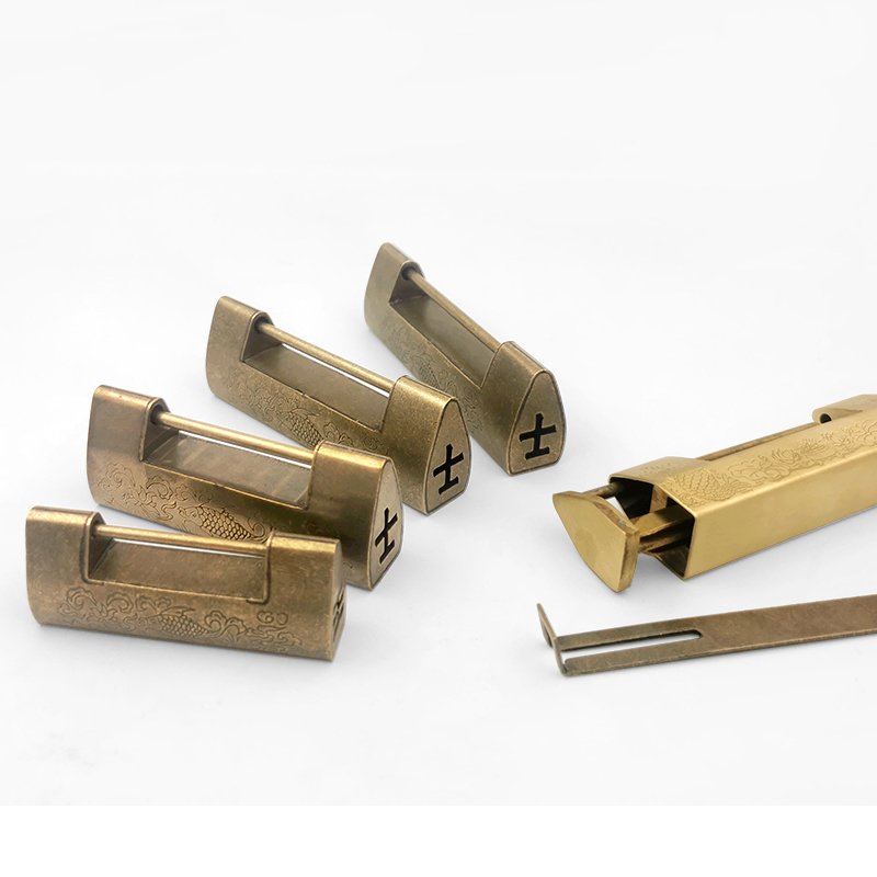 Copper lock small lock mini cabinet door lock small key lock one key to open multiple key locks Chinese antique lock retro lock