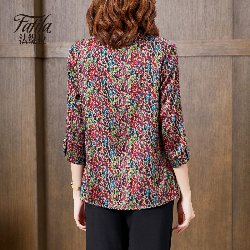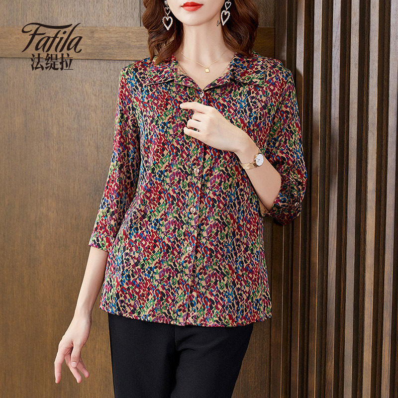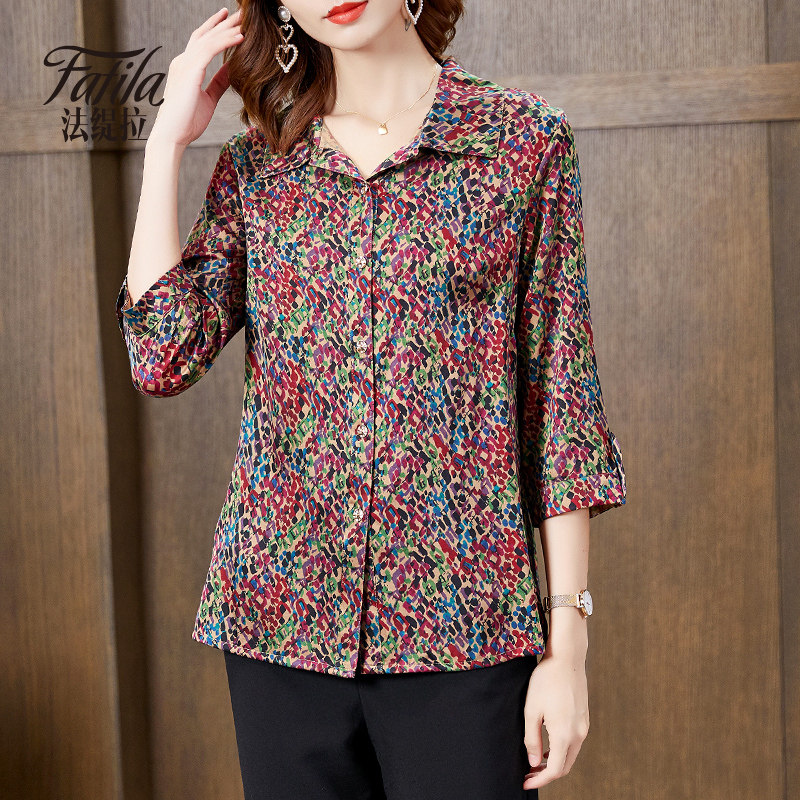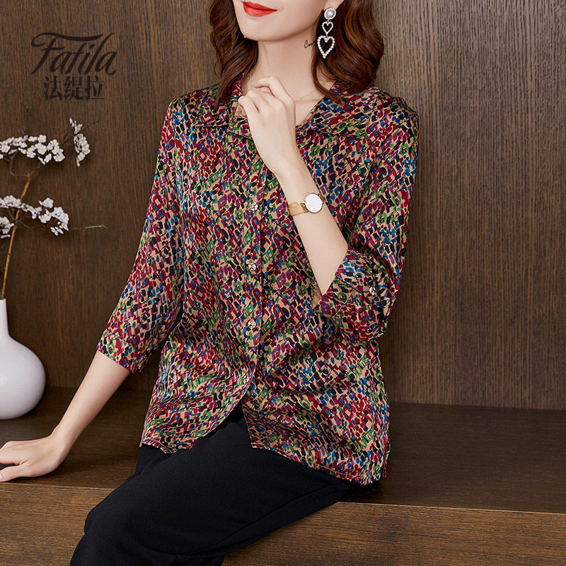 Heavy-pound real silk blouses women's large size printed small shirts mulberry silk shirts middle-aged mothers top 2021 new spring and summer