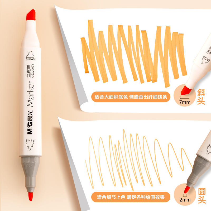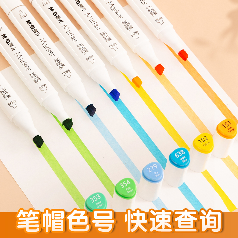 Morning Light Stationery Mike Pen Double Head Speed Dry Oily Color Students Suit Alcoholic Watercolor Pen Children Fine Arts Students Special Painting Graffiti Fill Color Cartoon 60 Color