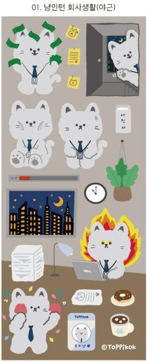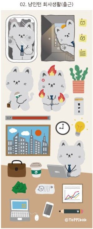 Monthly stationery Korean original toppikok stickers Working cat's daily ins cute wind hand account