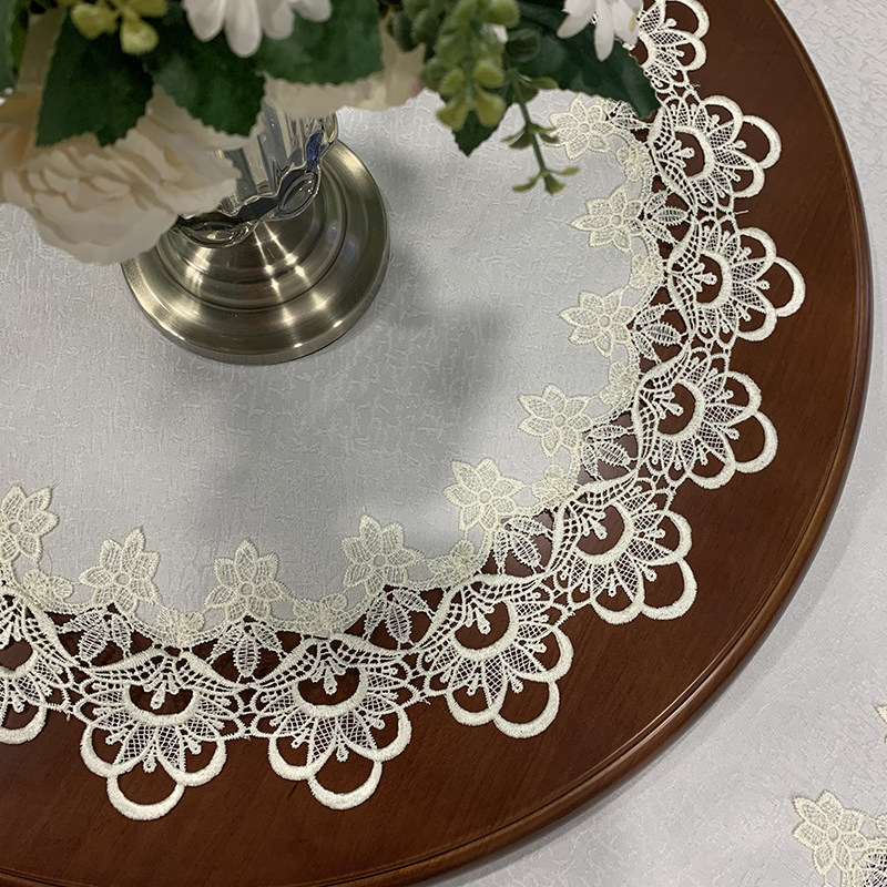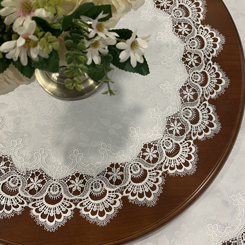 Round light lavish American lace table cushion retro Eurostyle round luxurious high-end senses white dining room table cloth