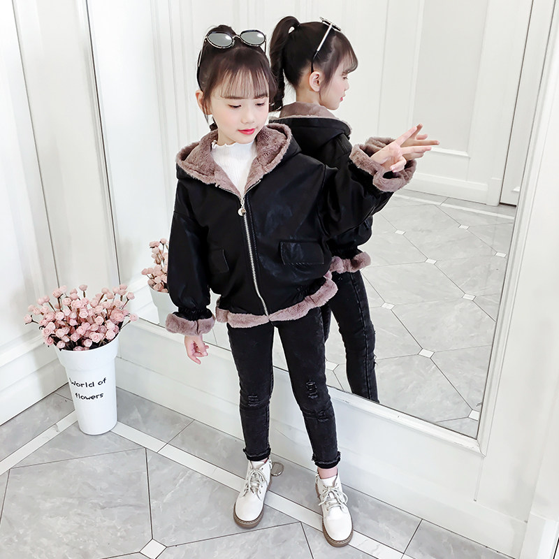 Girls' fleece jacket autumn and winter 2022 new foreign style winter clothing for big children in winter fashionable children's winter leather clothing trend