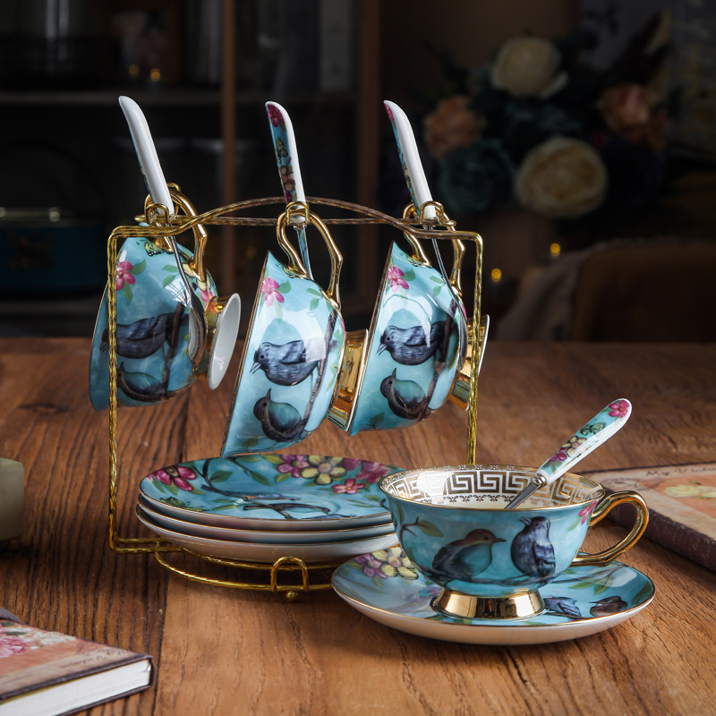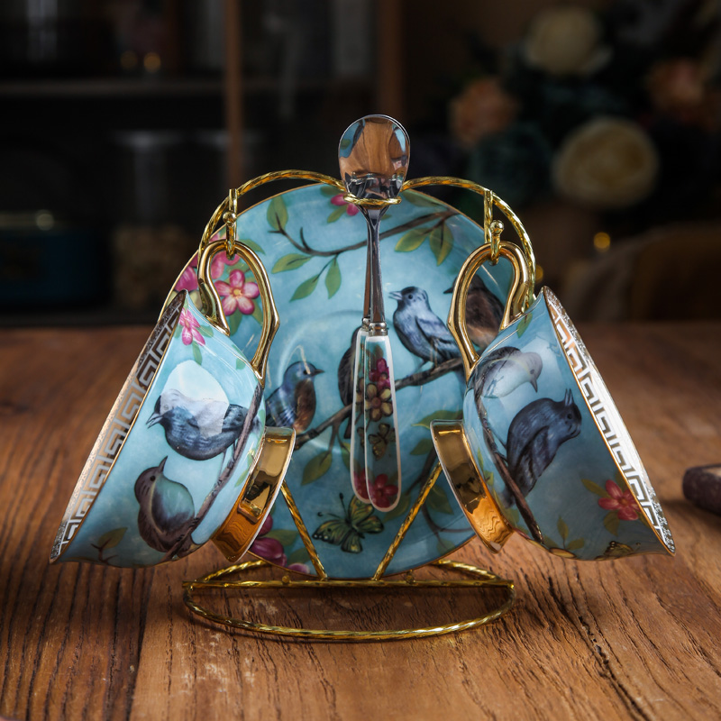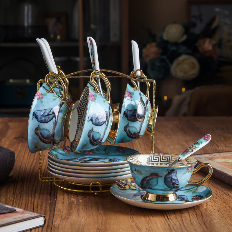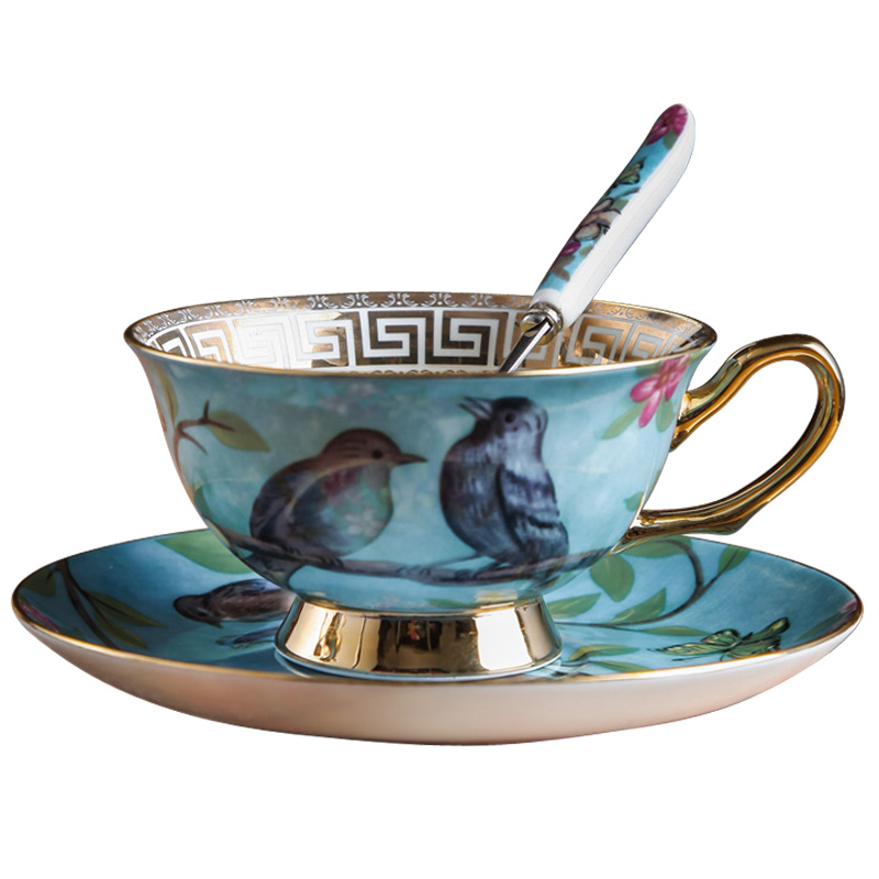 European bone China coffee cup and saucer set Household gold edge English ceramic small exquisite flower tea cup Afternoon tea elegant