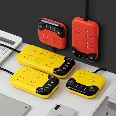 Cute plug-in multi-function creative socket panel porous plug-in with USB student with cable extension cable color