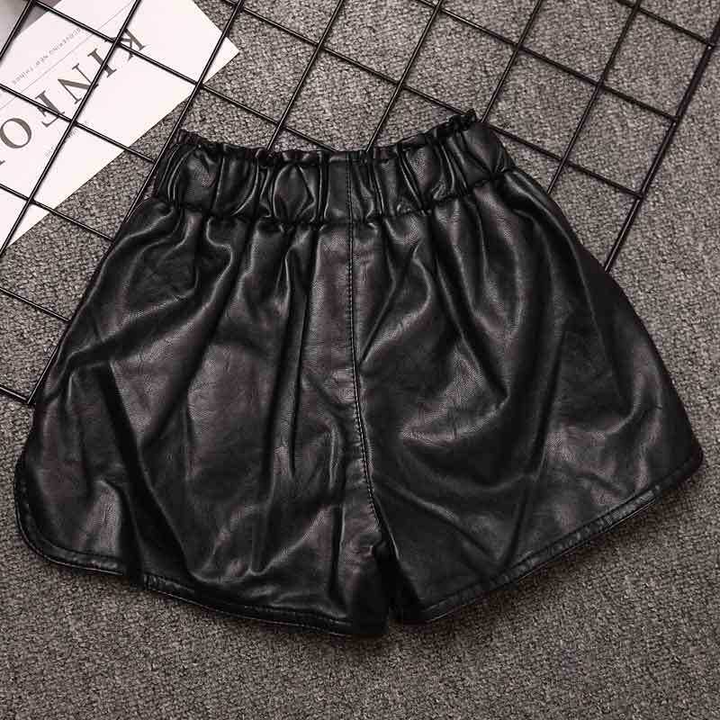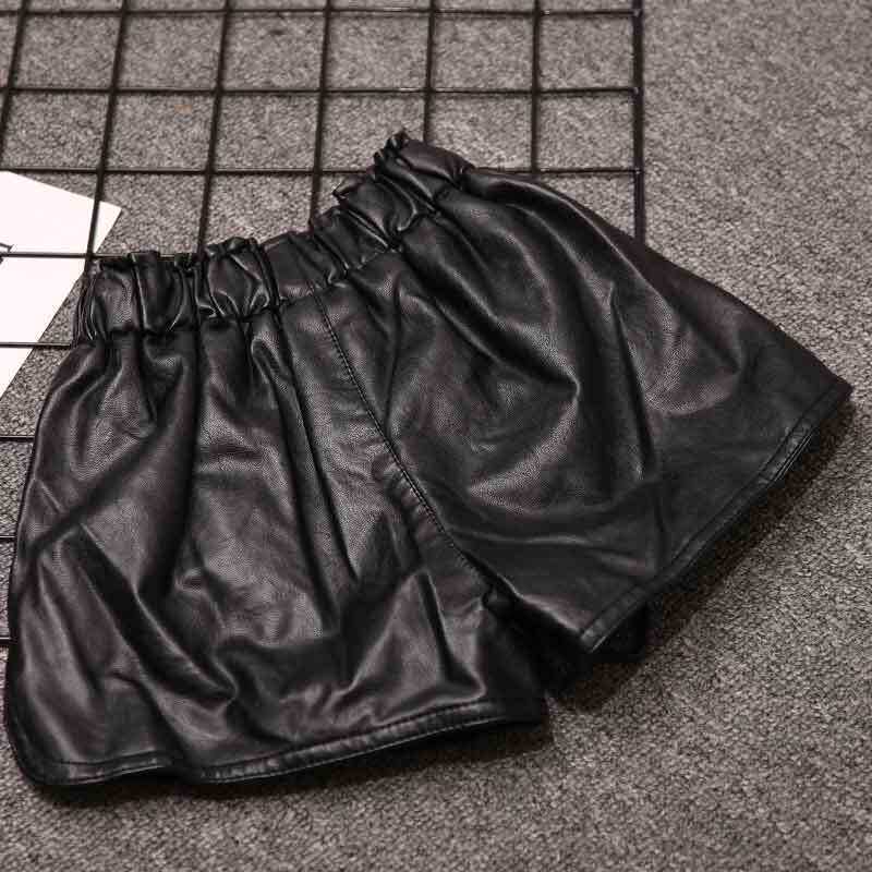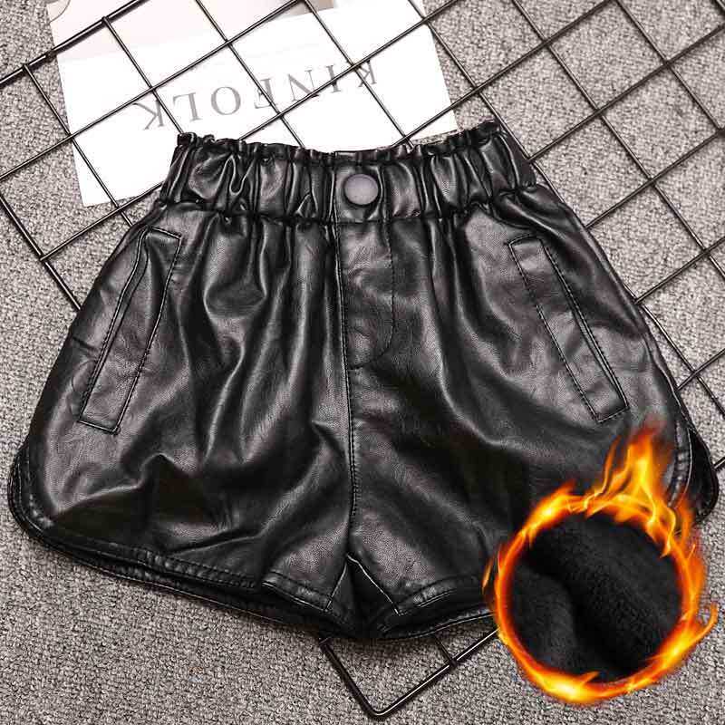 Girl leather shorts outside wearing 100 lap 2022 new autumn winter leather pants baby PU leather pants CUHK Tong high waist pants