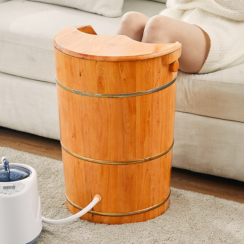 Household solid wooden barrel Steam foot wash foot bath tub Foot bath tub Wooden high-depth bucket over the knee over the calf steam leg fumigation bucket