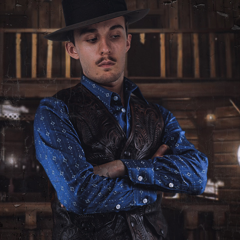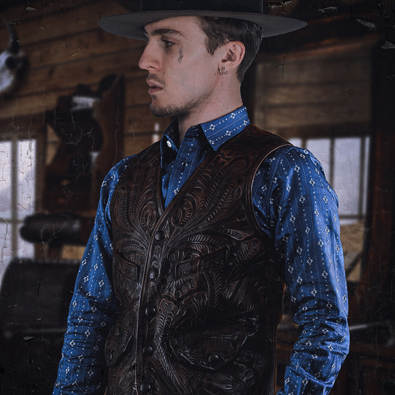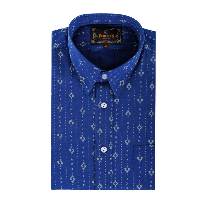 Pick Up Leak * American Southwest Pure Cotton Fabric Striped Retro Printed Blouse Blue Long Sleeve Casual Click man