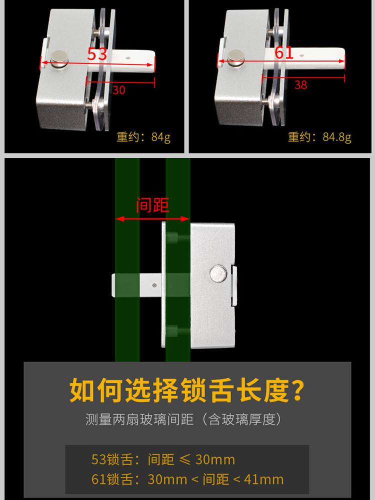 Bathroom Glass Pull Door Lock Bolt Middle Lock Makeup Room Pull Door Lock Translation No Frame Balcony Window Bolt Lock