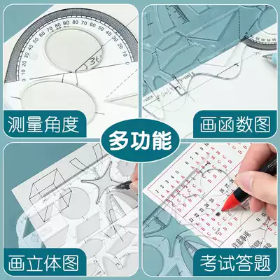 Multifunctional geometric function ruler Mathematical drawing template ruler Elephant ruler Drawing artifact Special graphics ruler for junior high school and high school students Stationery School supplies Protractor Hollow drawing ruler
