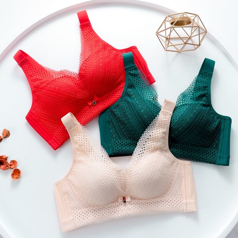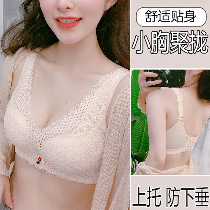 Q elastic baby cotton bra french lace bra no steel ring autumn and winter new products small chest underwear women gather together to collect auxiliary breasts