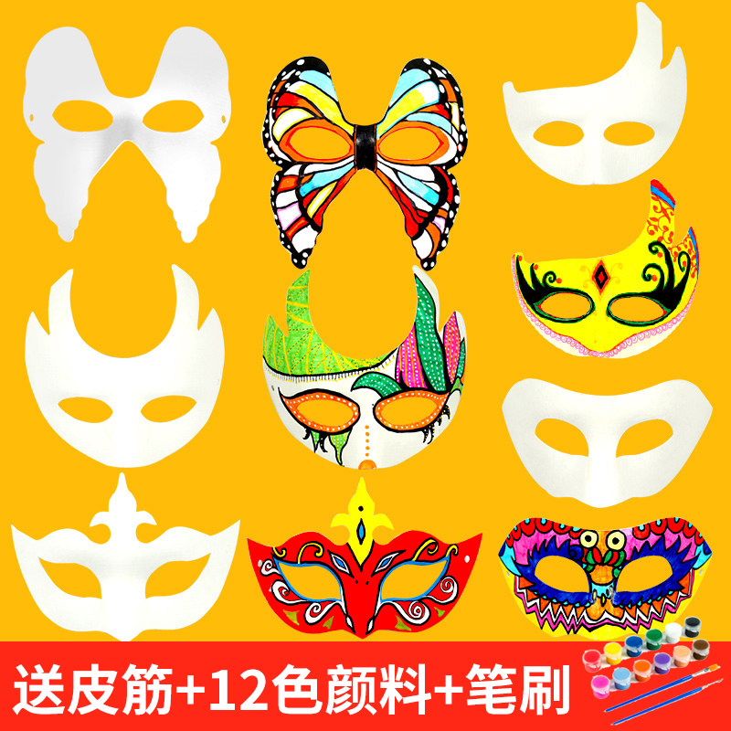 Hand Painted White Mask Children Graffiti Blank Pulp Mask Kindergarten Handmade Diy Face Spectrum Prom Props