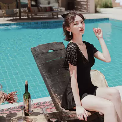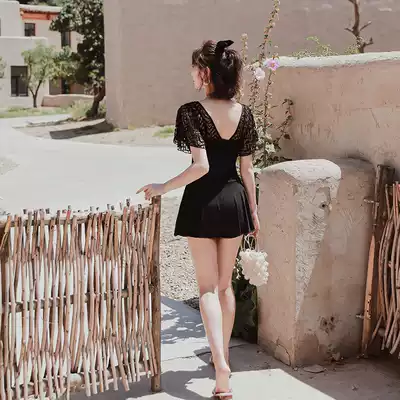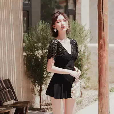 Yimeishan swimsuit women cover their stomachs and show thinness 2021 new one-piece Korean ins conservative skirt black lace swimming