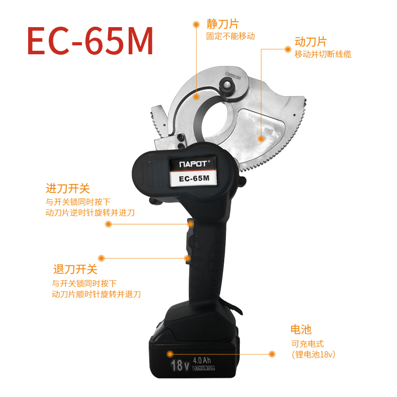 EC-65M Electric Ratchet Cutter Mini Rechargeable Gear Scissors Cable Copper Aluminum Cable Steel Strand Dual Use