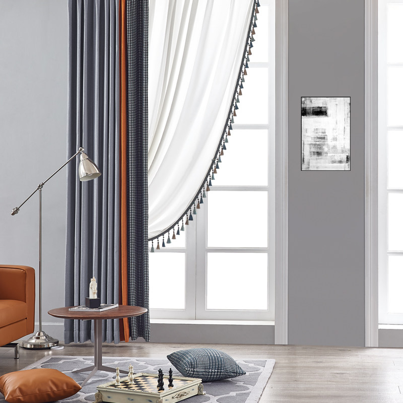 2022 new blackout houndstooth chenille splicing curtains light luxury Nordic minimalist modern living room bay window heat insulation