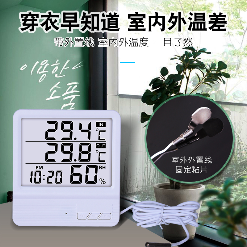 Indoor and outdoor electronic temperature and humidity meter with probe waterproof aquarium double temperature meter high accuracy