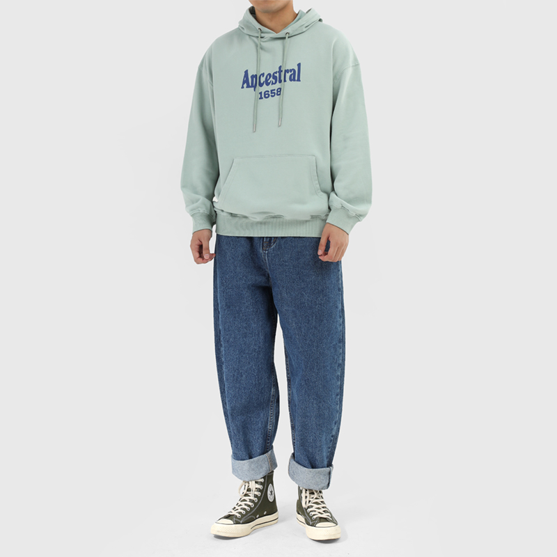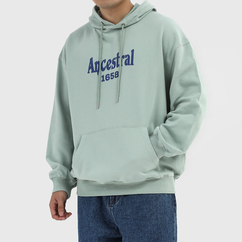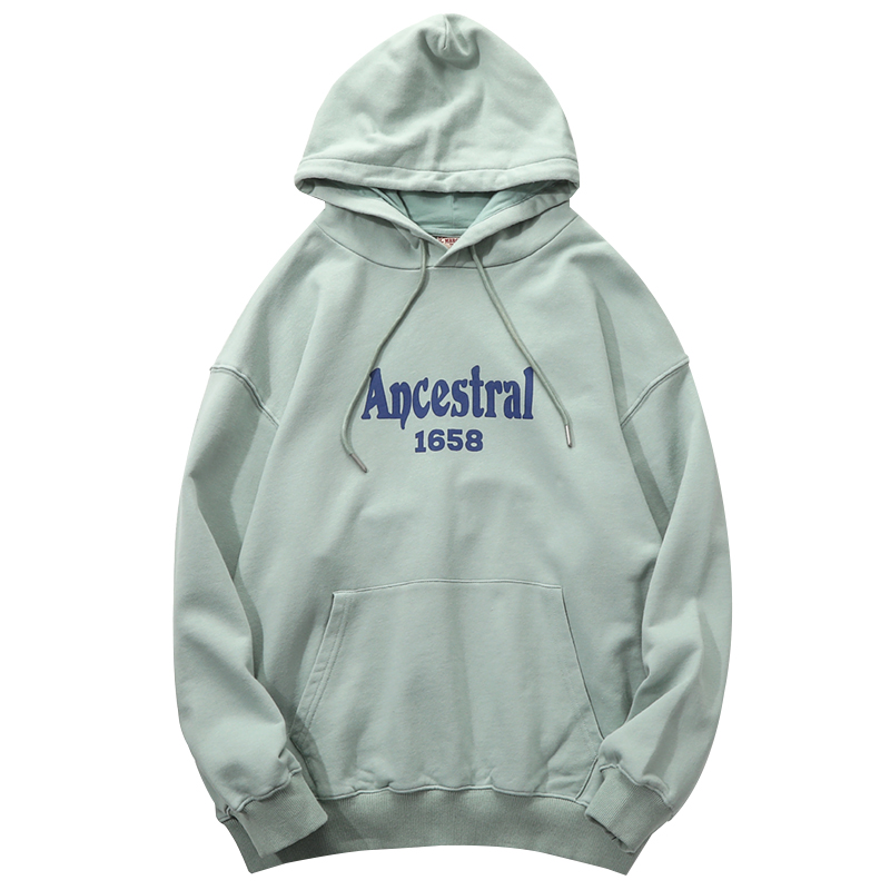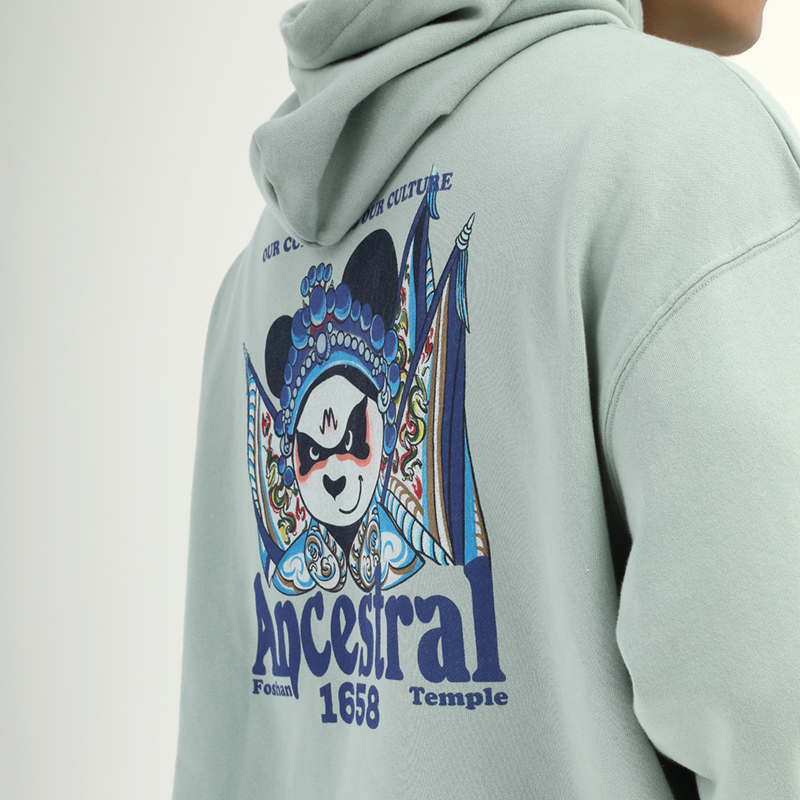 Cantonese Opera Culture 360g Heavy Thick Grass Green Loose Drop Shoulder Retro Hooded Pullover Casual Top Narrow MBBCar