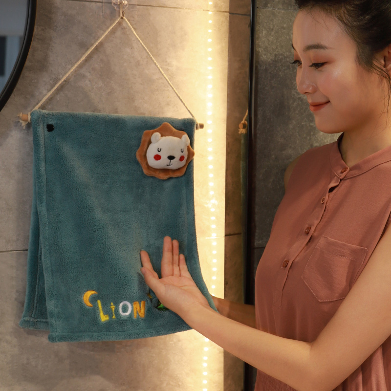 Increase thick hanging water absorbent hand towel cute creative bathroom hand wipe small towel Korean Net red dry hand cloth