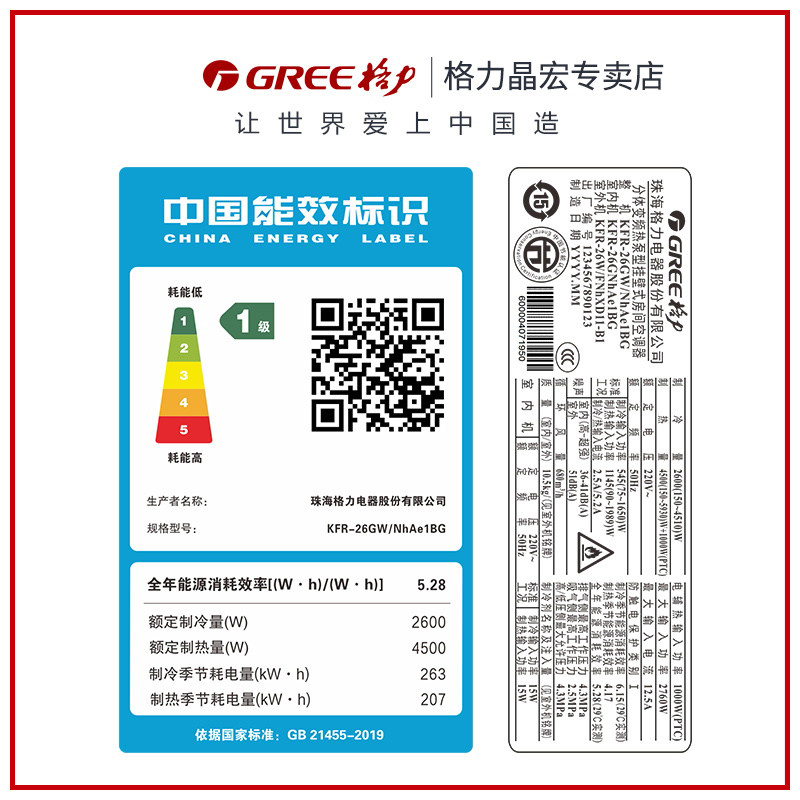 Gree Air Conditioning Large 1 new level energy efficient inverter wall hanging official flagship store energy saving cloud