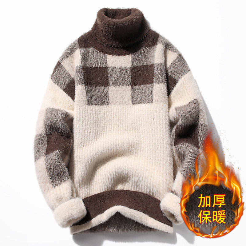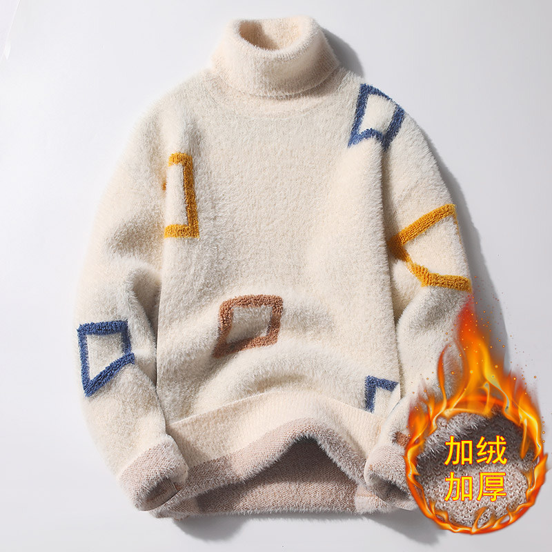 Winter mink velvet thick turtleneck sweater men's junior high school college students warm sweater youth all-match liner