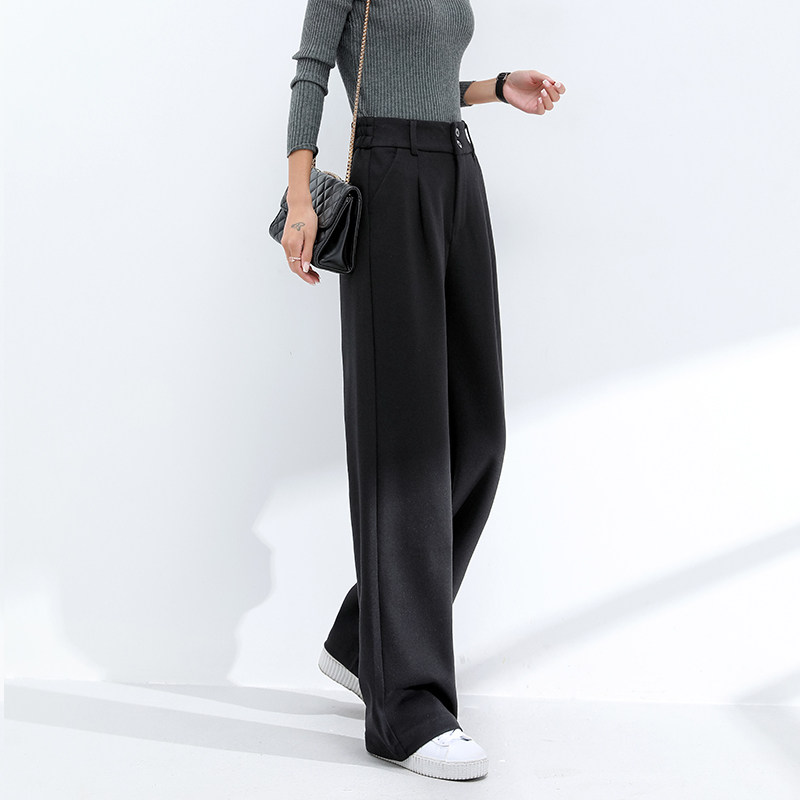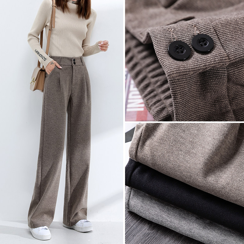 Wool wide leg pants women's autumn and winter 2021 new pants high waist hanging casual loose mopping straight trousers