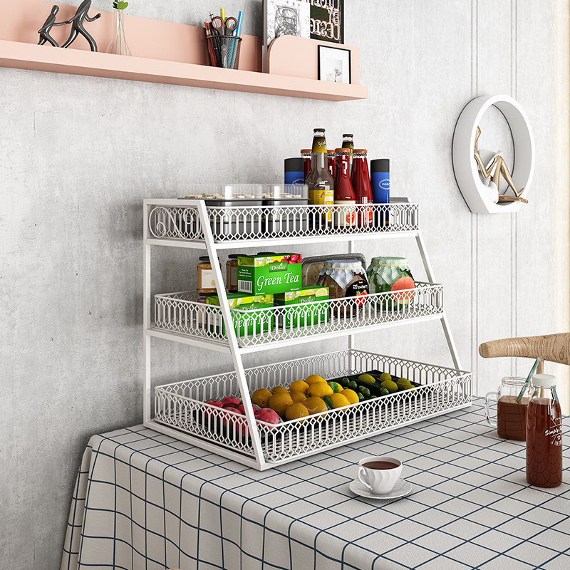 Kitchen table storage desktop shelf Double-layer snack finishing bar storage artifact storage shelf