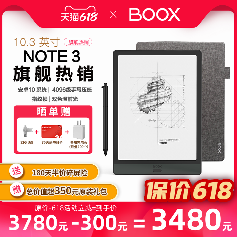 (Official flagship store) New BOOX Oprysite note3 Zhencai series large screen e-book reader 10.3 inch intelligent electric paper book ink screen computer electronic paper