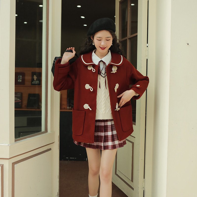 linjou Lingu Ling Jiu 2022 College Wind comeback Ancient day Department Coat Horn Button Small Fur Coat Female Short