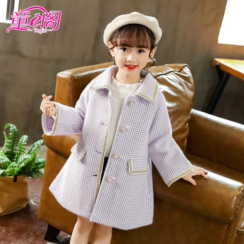 Girl Plaid Fur Coat Han Edition 2022 Autumn Winter Clothing Thickened Warm Clothes Big Boy Turned Collar Clip Cotton Coat