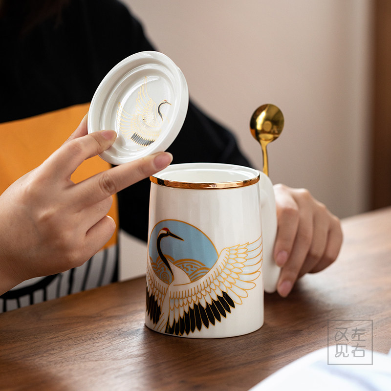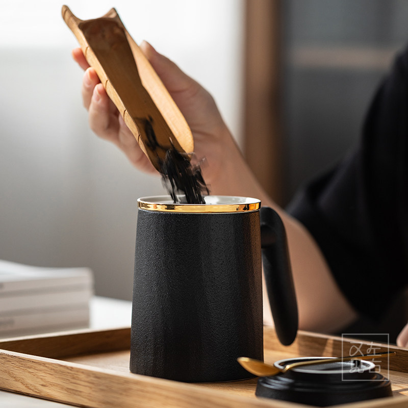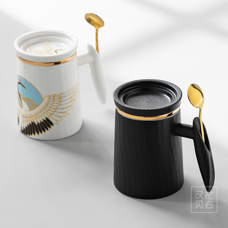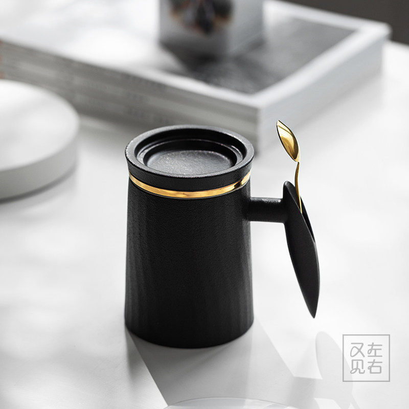 Creative Tea Water Separation Ceramic With Lid Spoon Mark Cup Home Large Capacity Filter Tea Cup Office Water Cup