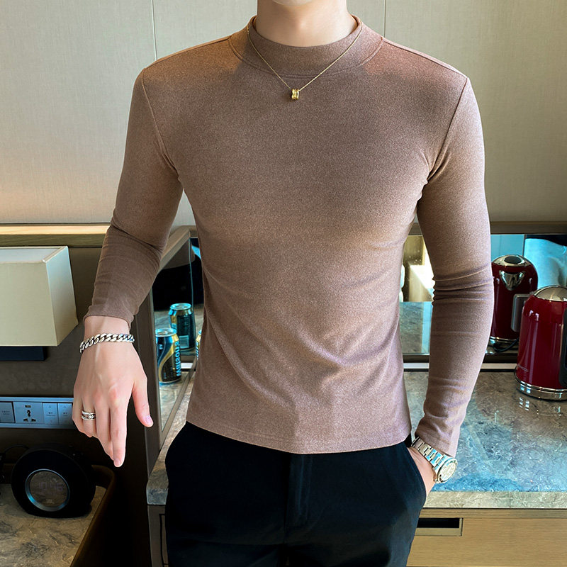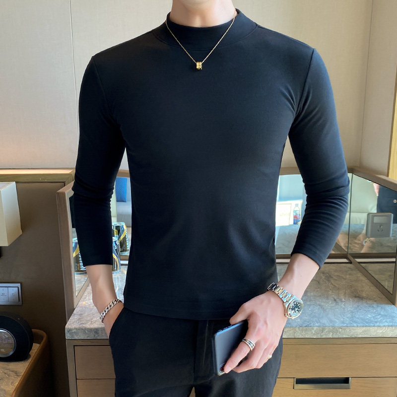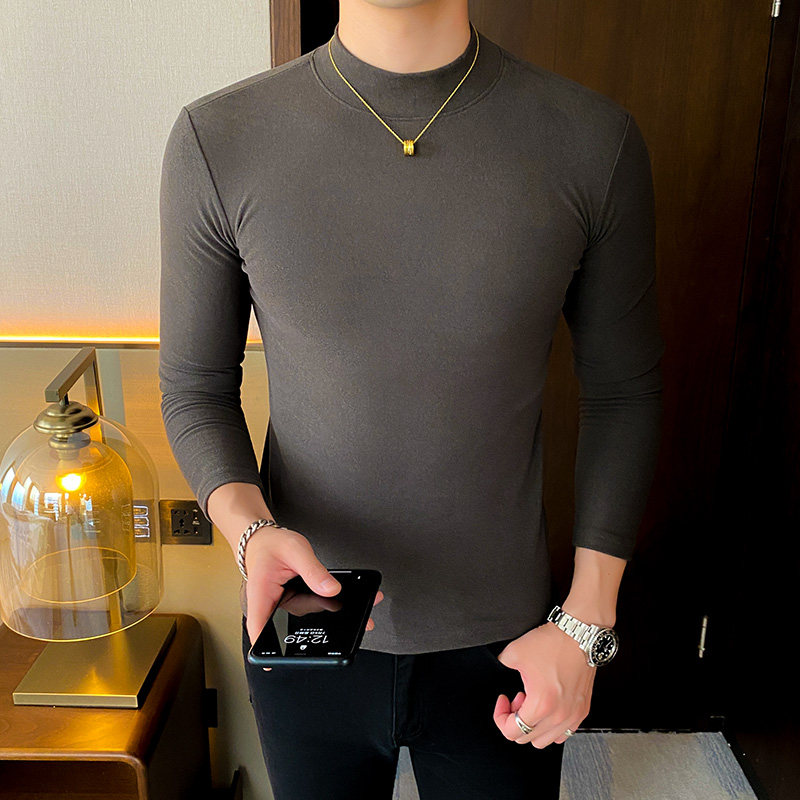 Undershirt men's autumn/winter double-sided velvet half-height collar inside the slim long-sleeved T-shirt trend thickened men's warm-up