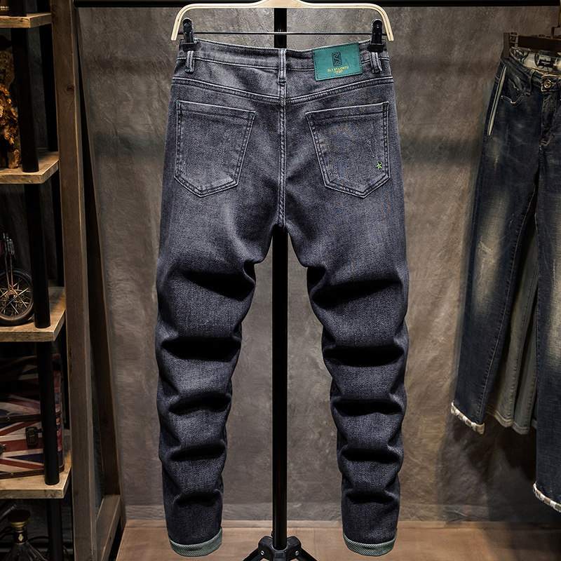 Autumn and winter jeans men's trendy brand slim skinny trousers men's Korean version of the trend all-match black high-end men's pants
