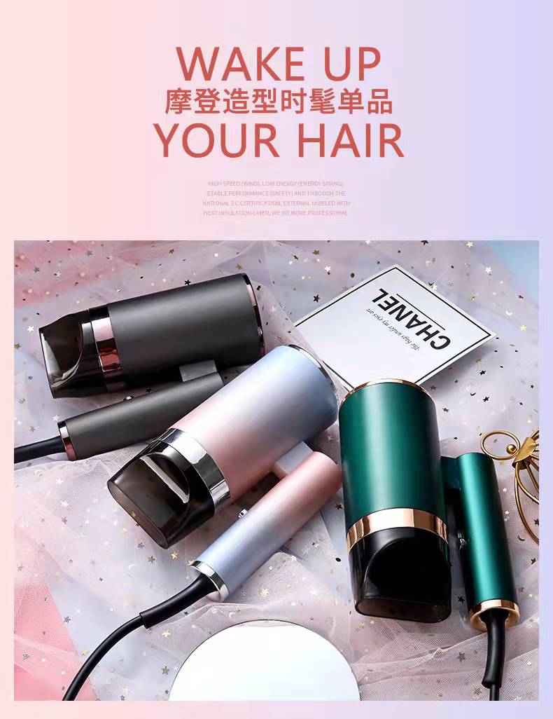 Hair Dryer Folding Cold Hot Air Hair Dryer Home Innate Maintenance Material Color Assisted Thermal Wind Gun 1200W