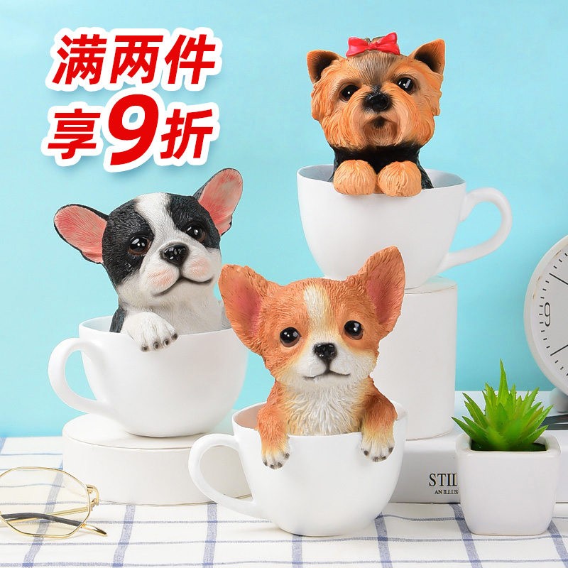 Home decoration creative personality cute wine cabinet living room bedroom living room tea cup simulation dog simple desktop decoration