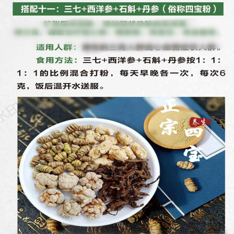 Four treasure powder Four treasure tablets Panax American Ginseng Salvia Three Treasure powder Qibao Tianqi Dendrobium Dendrobium tianma Tangerine peel