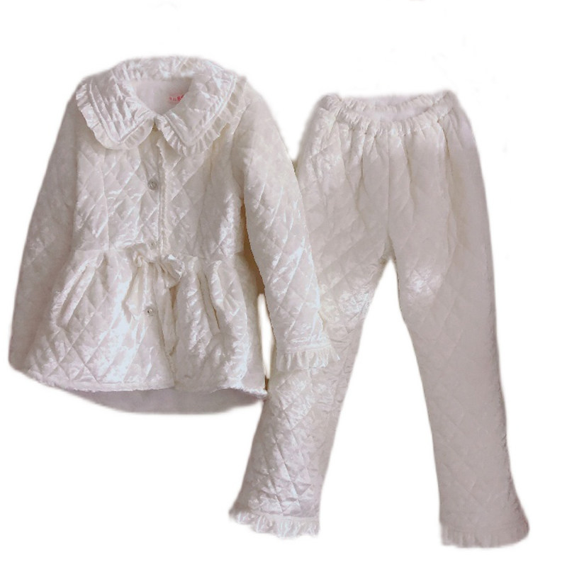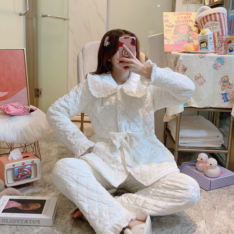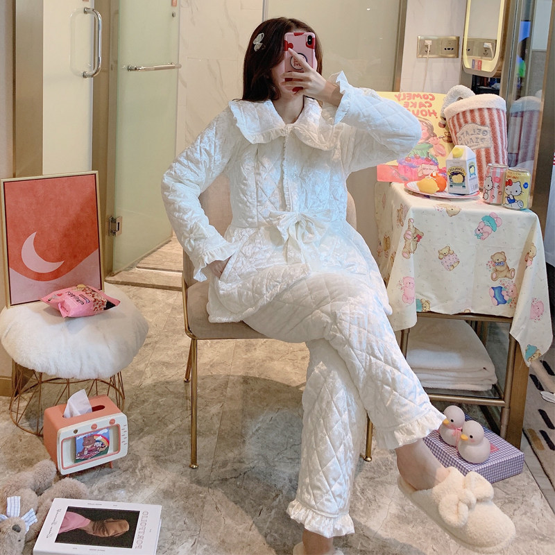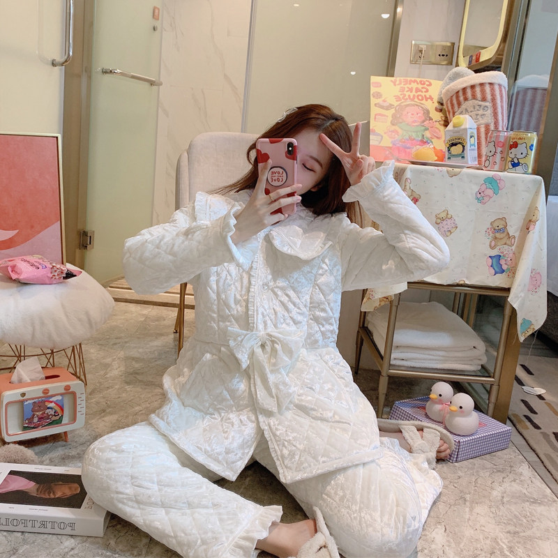 Winter Korean women's cotton pajamas three-layer quilted thick coral gold diamond velvet princess cute outer wear home clothes