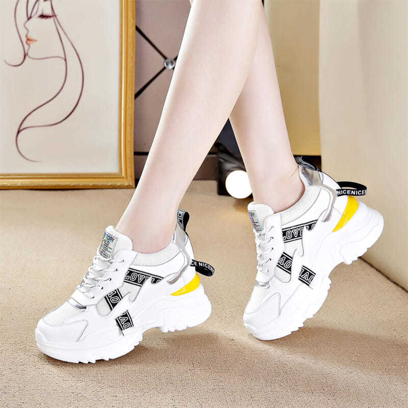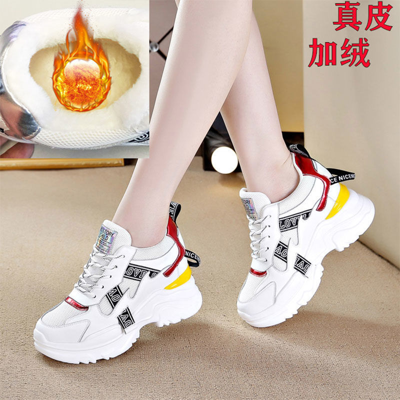 2022 New Daddy Shoes Women Ins Tide Superfire Genuine Leather 100 Hitch Sports Casual Shoes Thick Bottom Inner Heightening Small White Shoes