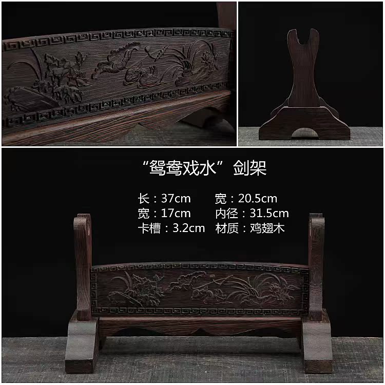 Simple rosewood mandarin ducks play in the water Shuanglong Xianrui Ping An sword stand