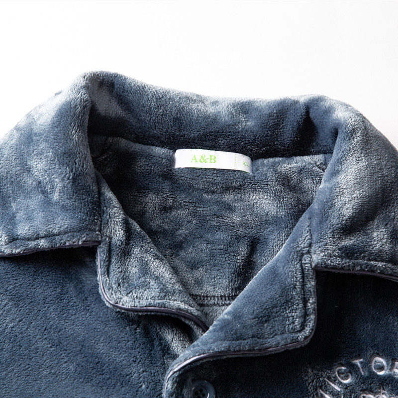 AB pajama men's autumn/winter coral velvet plush plush collar long-sleeved frankincly fluff warm home suit two-piece suit