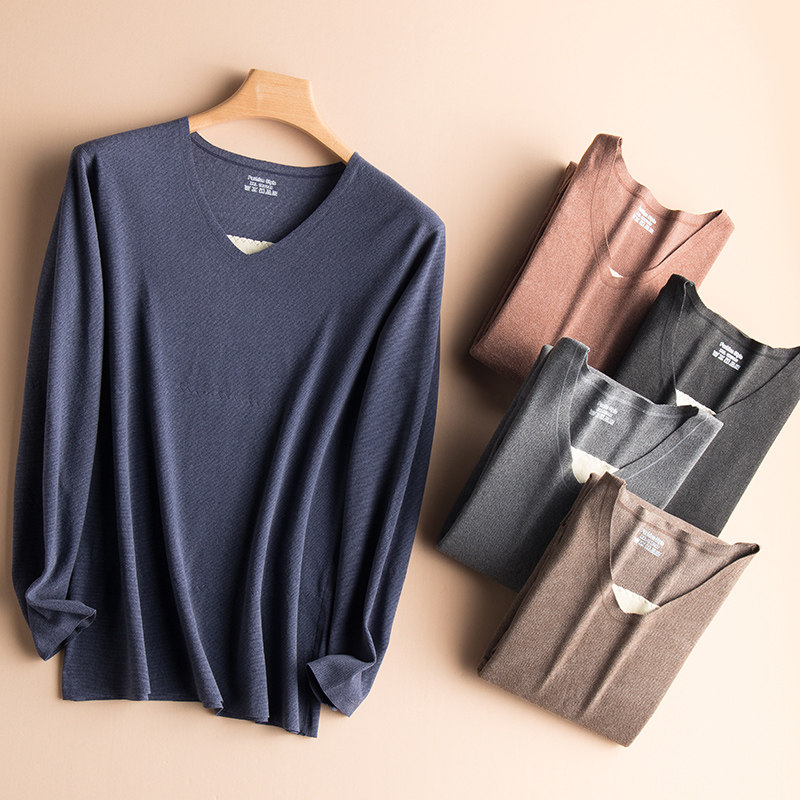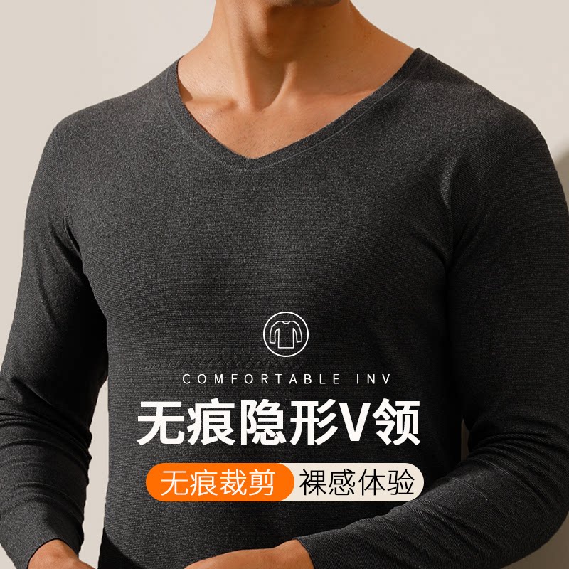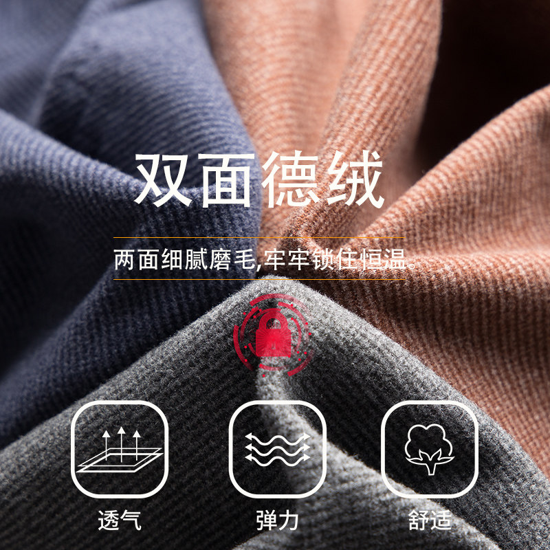 De Velvet No Trace Thermal Underwear Set Men's Fleece Fever Cold-proof Waist Protection Long Clothes Bottom Long Clothes and Long Trousers Winter