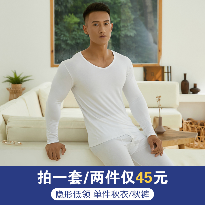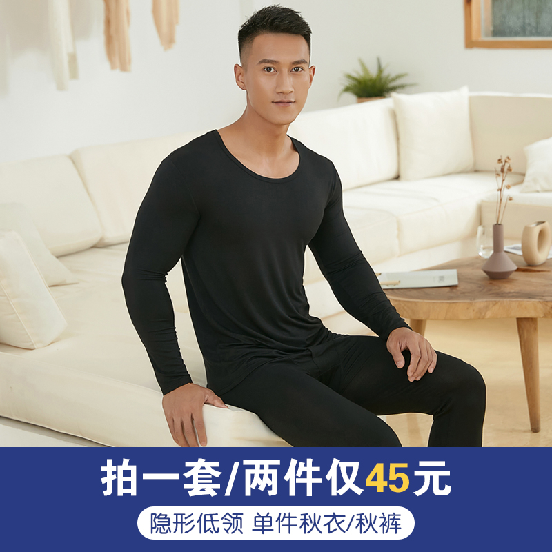 Modal autumn clothes men's tops pure cotton heating clothes one-piece sanitary pants thin tights low-neck bottoming shirts winter