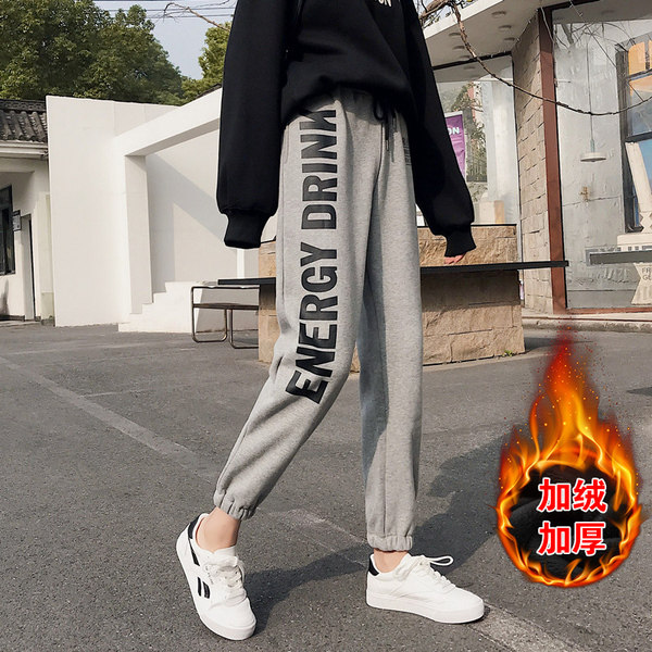 2020 fleece pants women's new outer wear harem pants women's winter thickened sweatpants loose Korean version thick fleece sweatpants women