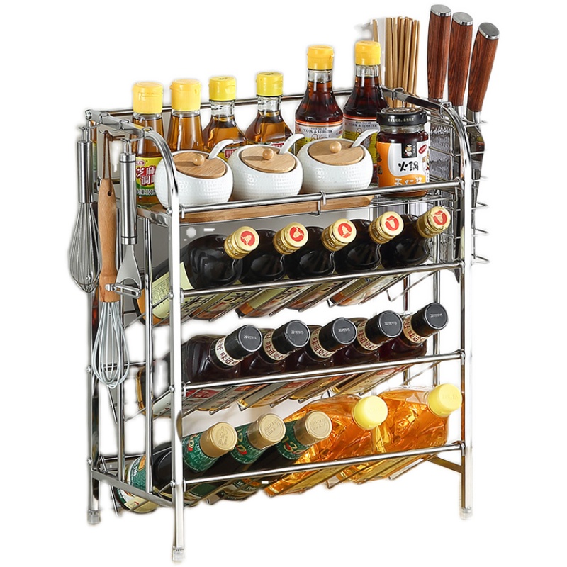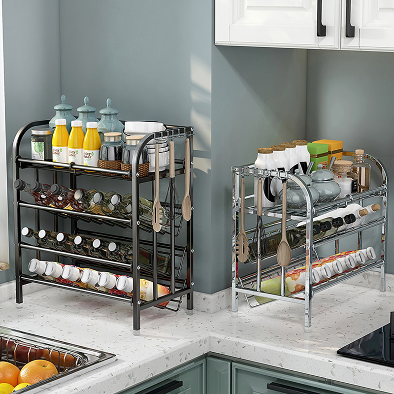 Kitchen rack stainless steel seasoning condiment storage layer rack countertop wall hanging shelf artifact supplies home Daquan