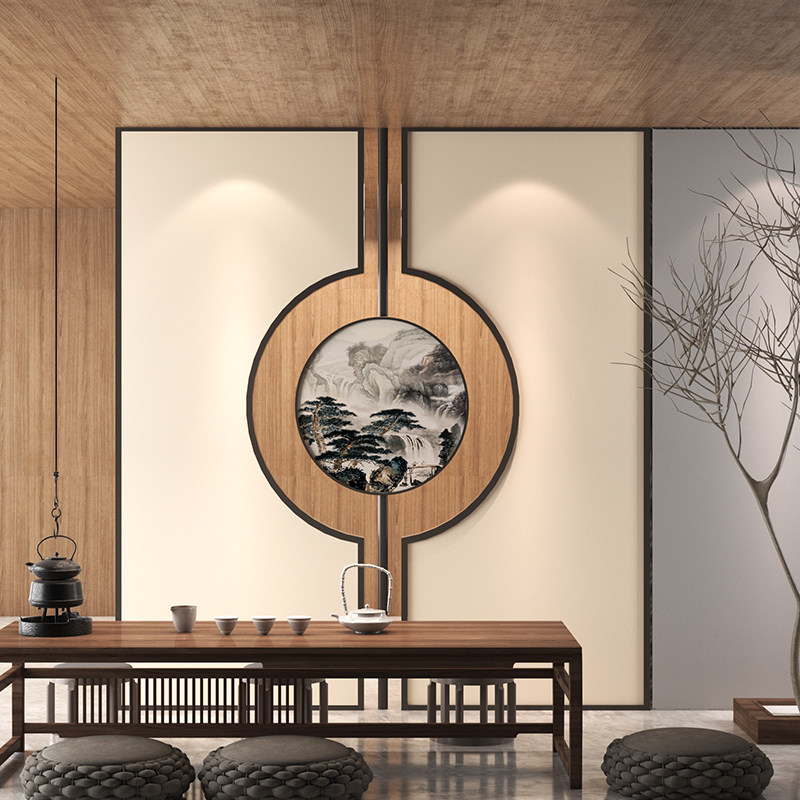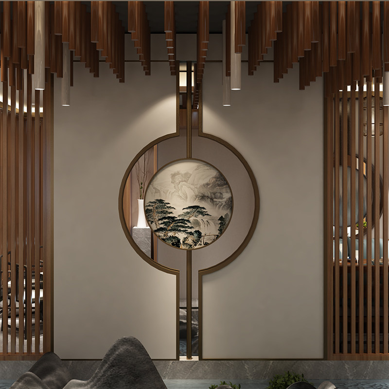 Modern new Chinese solid wood partition Xuanguan Living room Screen Hotel Tea social fence Brief Decorative Background Wall Seat Screen