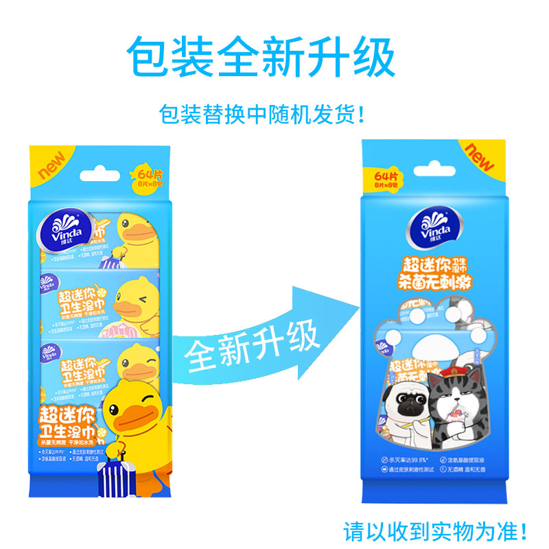 Vida Ultra Mini Wet Towels Small Package Cartoon Portable to Sanitary Wet Paper Towels Affordable 8 Packs 64 Of 64 Slices Wet Tissues