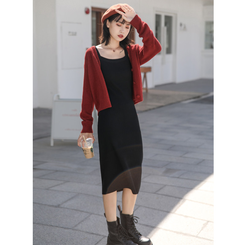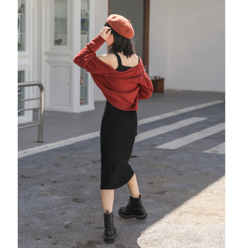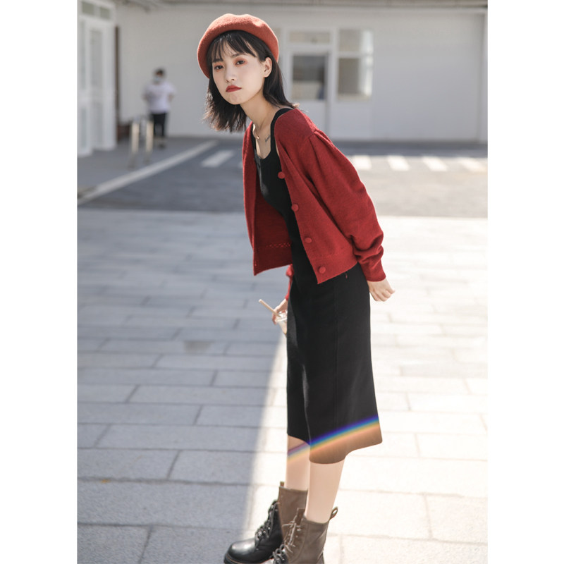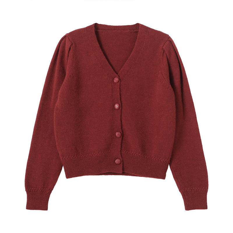 Retro Western style brick red sweater jacket Lazy wind knitted cardigan V-neck single-breasted short spring and autumn new style