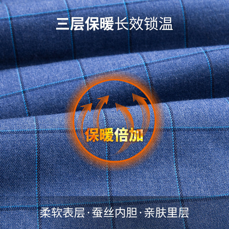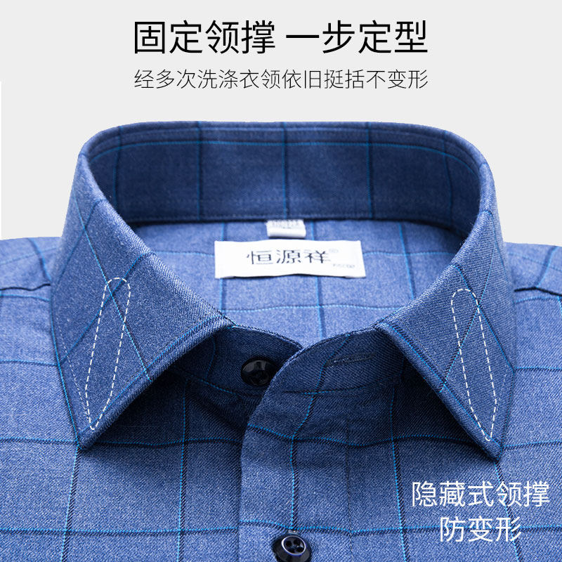 Hengyuanxiang warm shirt men's plaid winter business casual inch shirt thick mulberry silk velvet long-sleeved shirt